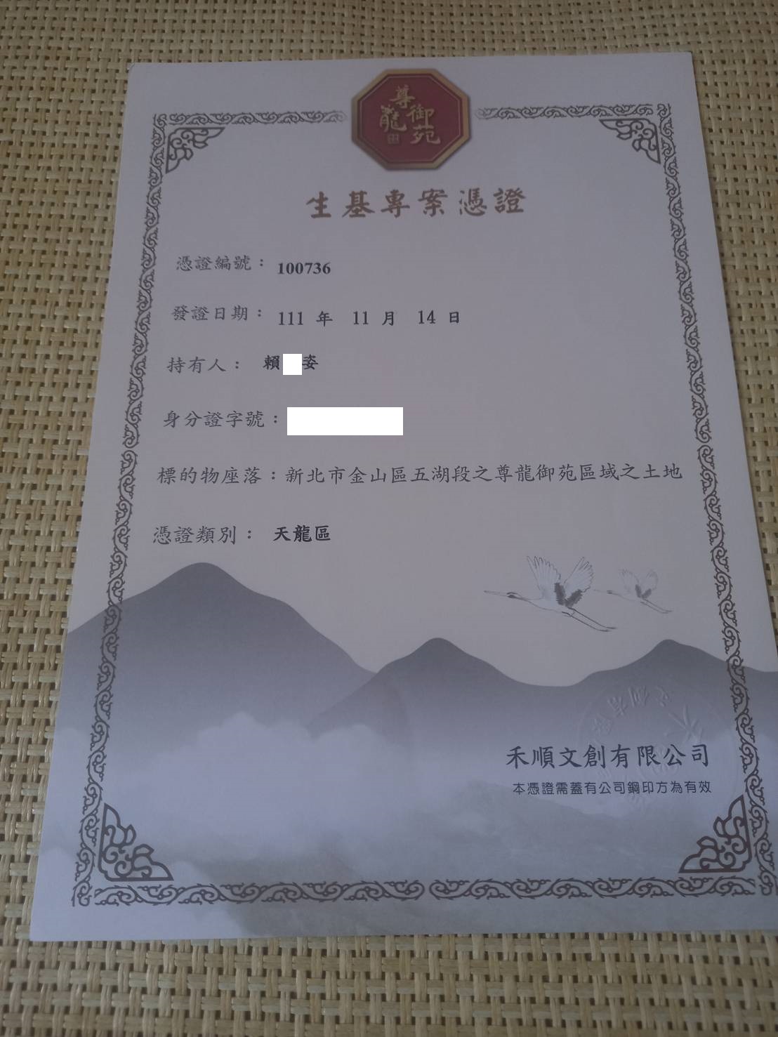 尊龍御苑使用憑證